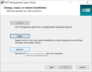 2.ESET Manegement Agentのアンインストール(ESET Endpoint Amtivirusのアンインストールは不要)